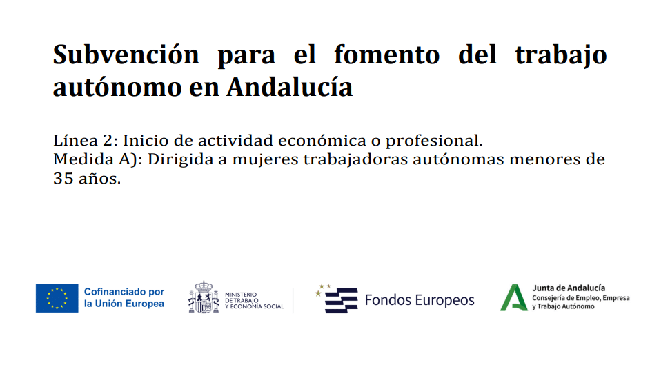 Joy van der Splinter – Peppers Marketing has received a grant from the Ministry of Employment, Business and Self-Employment of the Regional Government of Andalusia, funded by the European Union under the Andalusia FSE+ Programme 2021–2027, to promote self-employment in Andalusia. Line 2 of the grant is for the start-up of an economic or professional activity and is aimed at self-employed women under 35 years of age.